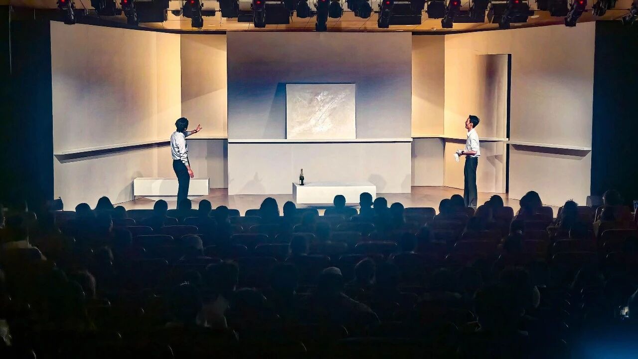 11月25日下午,“美蕴人生”美育公开课第十二期重磅启幕,上海话剧艺术中心经典话剧《艺术》在长宁校区综合楼506剧场精彩上演。在近90分钟的表演里,师生们共同经历了一场直击心灵的艺术洗礼。