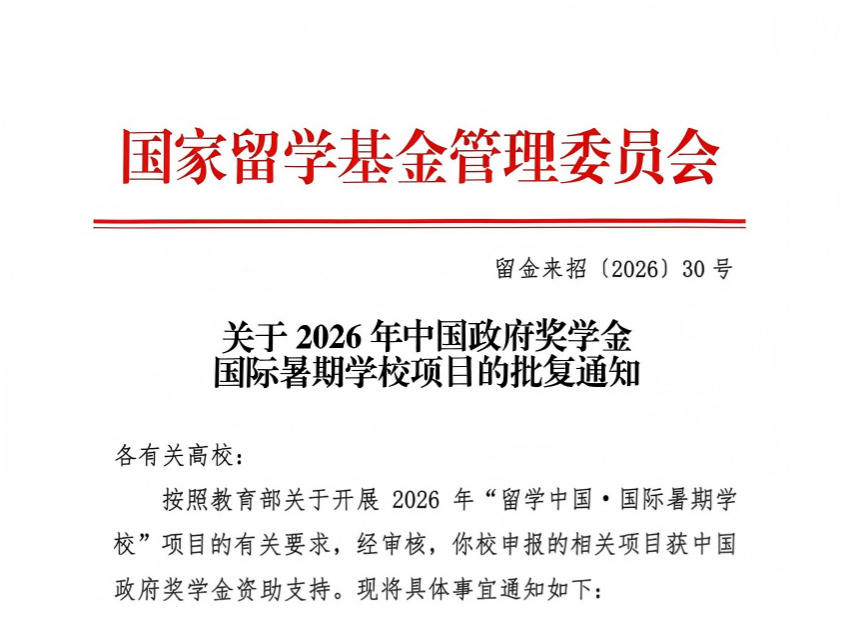 我校获批2026年中国政府奖学金国际暑期学校项目