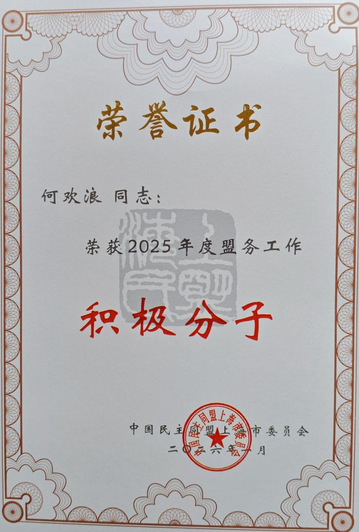 为表彰先进,树立榜样,激励各级民盟组织继续做好盟务工作、鼓舞广大盟员不断提高履职尽责的能力,1月15日,民盟上海市委十六届五次全委(扩大)会议对2025年度盟务工作先进集体、先进个人进行表彰。民盟上海对外经贸大学委员会荣获多项荣誉,本次表彰是对委员会思想政治建设和宣传工作、组织建设等方面的充分肯定,展现了委员会的良好风貌和盟员的履职担当。2025年度思想政治建设和宣传工作先进集体二等奖2025年度组织发展工作先进集体二等奖2025年度盟务工作积极分子何欢浪(主委国际经贸学院)孙茜(委员会展与传播学院)