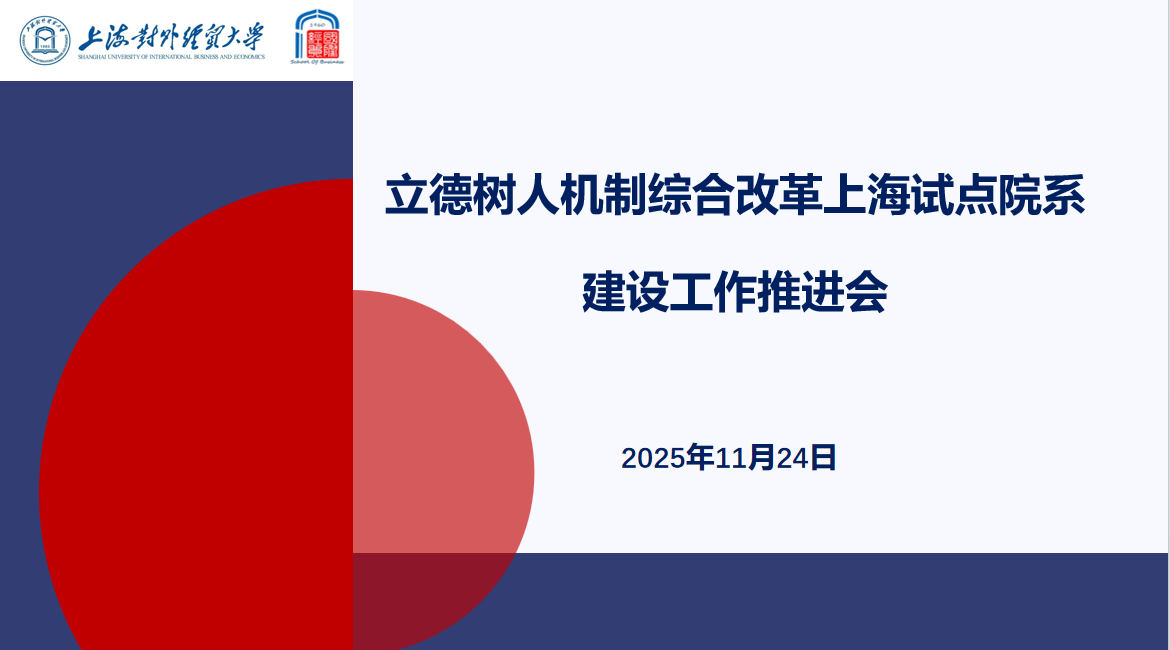 为深入学习贯彻党的二十届四中全会及全国教育大会精神,高质量推进新时代立德树人工程,经学校党委推荐,上海市教卫工作党委、市教委遴选,国际经贸学院成功获批上海市立德树人机制综合改革试点院系。11月24日下午,立德树人机制综合改革试点院系建设调研推进会在松江校区召开。校党委副书记、副校长沈艺,校党委常委、宣传部部长郭茜,党委学(研)工部部长缪韵笛,国际经贸学院党委书记张嵘等出席会议。沈艺在讲话中强调,实施新时代立德树人工程是习近平总书记在全国教育大会上作出的重大部署,更是教育强国建设的核心任务。她指出,改革试点工作需紧扣教育强国建设目标和上海市“立德树人机制综合改革试点区”实施方案要求,聚焦重点创建任务,既立足国家战略需求,又贴合学院学科特色。试点工作要坚持问题导向,树立系统思维和标杆意识,充分发挥学科优势,突出制度创新和育人实效,探索以高质量党建引领立德树人事业高质量发展的新路径,以三年建设周期为契机,形成可复制、可推广的机制化成果。会上,张嵘围绕试点工作推进情况与阶段性成果、创新亮点与特色做法、下阶段重点工作计划等方面作详细汇报。会议就试点建设展开深入研讨,进一步明确了工作的核心方向、关