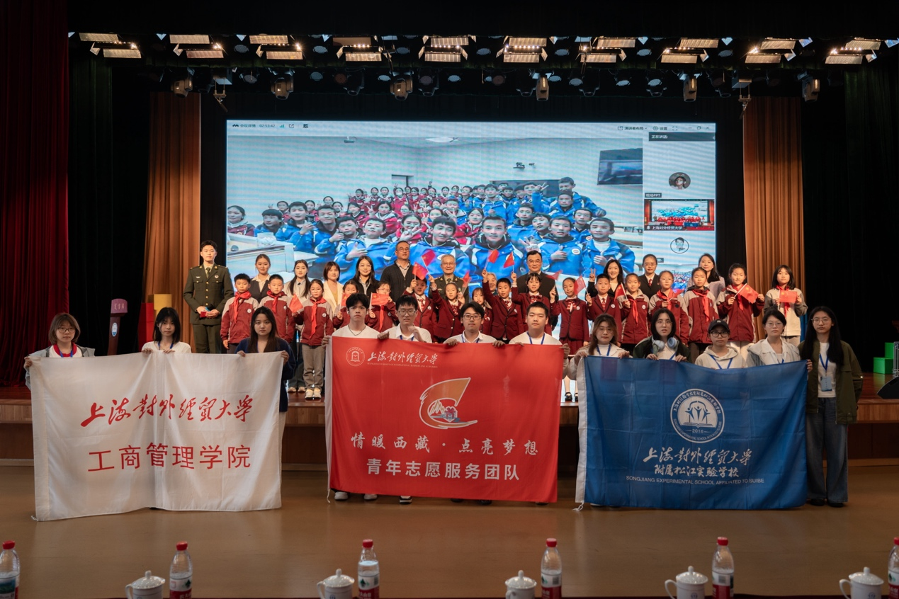 “雪域有界,国安无界。沪藏同心,我们都是国家安全的守护者!”这句发自心底的誓言,通过云端传遍沪藏两地。4月14日,在第十一个全民国家安全教育日到来之际,上海对外经贸大学工商管理学院联合上海对外经贸大学附属松江实验学校,与西藏日喀则市定日县师生云端相聚,共同开展“沪藏同心,国安同行”大中小思政一体化国家安全教育日主题红色班会。上海对外经贸大学工商管理学院党委书记谈华在致辞中向沪藏两地师生提出殷切嘱托。他指出,此次班会既是一堂生动的思政教育实践课,也是一场铸牢中华民族共同体意识的深刻洗礼。他希望两地学子牢记家国初心,学习国家安全知识,增强防范意识,以实际行动守护信息安全、维护民族团结。希望两地教师深耕思政教育,将国家安全理念融入日常教学,让红色基因代代相传。“一株小草,承载大国担当;一段往事,激荡少年初心。”松江老兵讲故事宣讲团的李旭亮同志深情回忆起在莫桑比克执行维和任务的经历,以一个个鲜活的细节,讲述中国青蒿素挽救无数疟疾患者生命、扭转国际社会对中国偏见的真实故事。松江区人民法院民事审判庭法官张树腾围绕军事安全、网络安全、文化安全等重点领域,用同学们听得懂、记得住的生活案例以案释法,鼓励