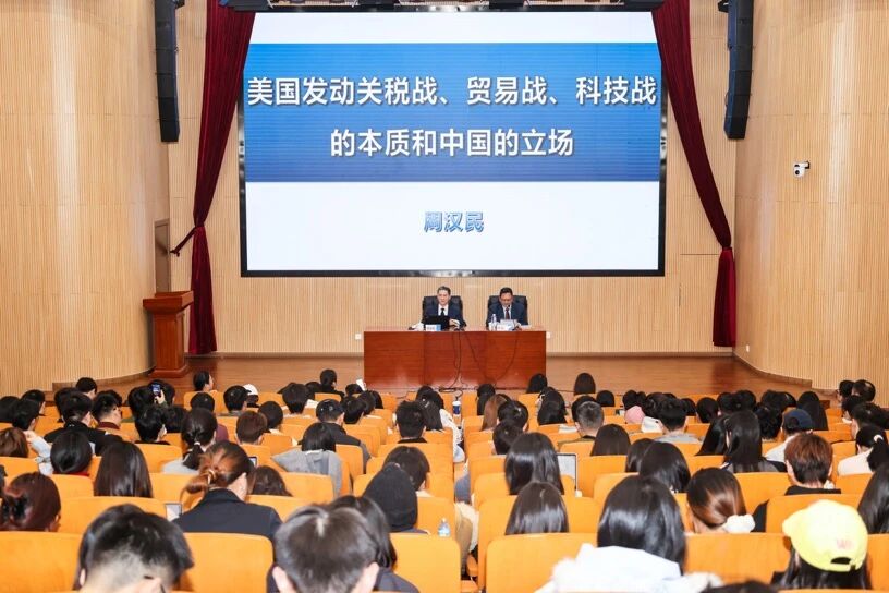 为传承弘扬裘劭恒大师精神,进一步丰富校园学术文化,法学院推出“裘劭恒法治讲坛”。首场报告于11月26日下午在松江校区思源报告厅举行,全国政协常委、民建中央原副主席、上海市政协原副主席、上海公共外交协会会长、我校法学院首任院长、学校杰出校友周汉民教授受邀出席,为师生作了题为《美国发动关税战、贸易战、科技战的本质和中国的立场》的专题讲座。全校师生300余人参加学习,讲座由法学院院长乔宝杰主持。