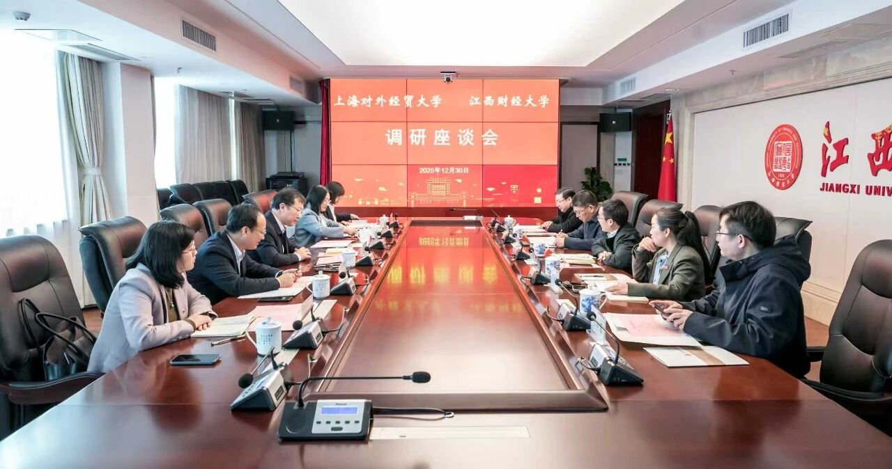 1月5日下午,南昌大学副校长平卫英一行来校调研交流,校长汪荣明、副校长徐永林出席调研活动。汪荣明主持交流座谈会。汪荣明对平卫英一行的来访表示欢迎,并对南昌大学此前热情接待我校调研学习致以诚挚谢意。他表示,江西作为工业强省,正加快推进内陆开放试验区建设,在传统产业转型、决策咨询服务等领域蕴含着丰富的研究课题与发展机遇。高校智库建设应坚持“小切口、深研究”的思路,立足自身学科禀赋打造核心竞争力,需精准对接区域发展真问题、聚焦关键点发力,形成差异化发展特色。他强调,校际交流是破解智库建设瓶颈、推动提质增效的重要桥梁,期待双方以此次交流为契机,深化资源共享、联合研究与平台共建,携手在服务国家对外开放战略和江西内陆开放试验区建设等重大任务中贡献智慧与力量。平卫英对学校的热情接待与真诚分享宝贵经验表示感谢。她表示,上海对外经贸大学在智库建设领域站位高、思路清、举措实,在服务国家战略和区域发展中展现出鲜明特色与丰硕成果,其先进经验为南昌大学提供了宝贵借鉴。她谈到,南昌大学作为江西高校的排头兵,正全力提升人文社科发展质量,当前在智库研究聚焦度、成果与实际需求衔接度等方面仍有提升空间。此次来访核心是对标