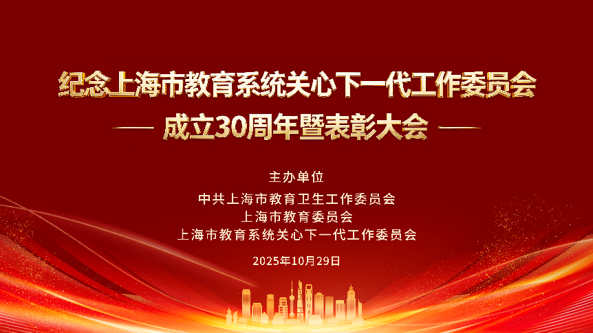10月29日,以“心系下一代”为主题的纪念上海市教育系统关心下一代工作委员会成立30周年暨表彰大会在于漪教育教学思想研究中心召开。教育部关工委主任李卫红,上海市委组织部副部长、老干部局局长、市关工委常务副主任王庆洲,上海市教育卫生工作委员会书记江帆、副书记张艳萍,上海市教育系统关工委主任李宣海,上海市杨浦区教育局党工委书记何劲松,上海市教师教育学院纪委书记王纾然等领导出席活动。活动由上海市教育关工委执行主任高德毅主持。本次活动由上海市教卫工作党委、上海市教委、上海市教育系统关工委联合主办,汇聚各方力量共话青少年成长、总结30年工作成果,并表彰先进典型,为关心下一代事业注入新动能。我校党委副书记吴毅,离退休党委书记邹囡囡,校关工委秘书长金道明出席了会议。在大会表彰的先进典型中,我校多位老同志位列其中:老同志陈元龙荣获2025年上海市教育系统关心下一代工作终身荣誉奖、老同志莫怡荣获2025年上海市教育系统关心下一代工作先进个人称号、老同志金道明荣获2023-2024年度上海高校优秀特邀党建组织员称号。我校关工委荣获2025年上海市教育系统关心下一代工作先进集体荣誉。大会还颁发了涉及关工委理