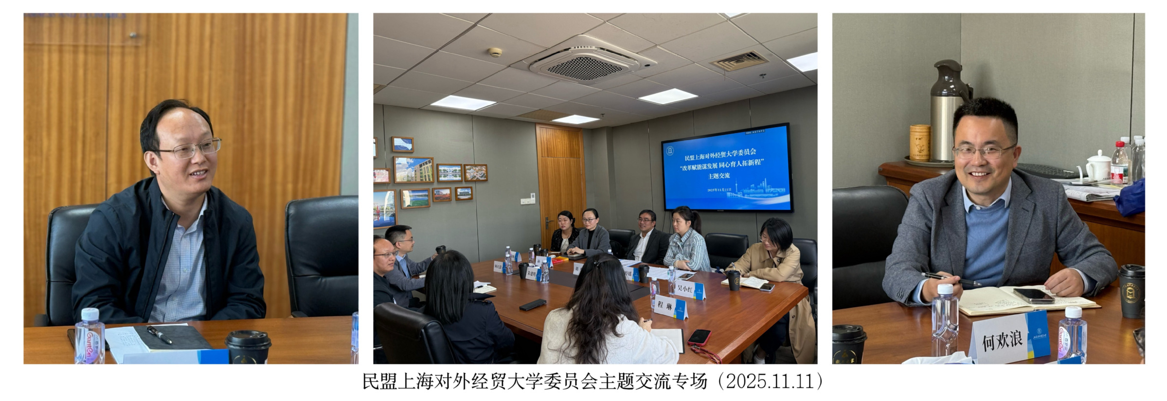 为深入学习贯彻党的二十届四中全会精神,巩固深化“学规定、强作风、树形象”主题教育成效,落实立德树人根本任务和推动学校事业改革发展,2025年11月至12月,党委统战部组织学校统战成员开展了“改革赋能谋发展,同心育人拓新程”主题交流活动。各民主党派基层组织、统战团体成员代表参加了相关活动,统战部全程参与支持并邀请学校部分职能部门负责人代表共同交流研讨。本次活动由党委统战部牵头,以民盟委员会、民建支部、民进支部、农工党支部、致公党支部、九三支社、知联会、欧美同学会、民族联为单位,组织开展了9场座谈交流,先后邀请到党委统战部部长、教务处处长朱建明,科研处副处长许建红,发展规划处副处长朱心明,人事处副处长王胤卿,研究生院副院长汪建新、国际经贸创新与治理研究院副院长张海娜,招生就业处处长魏舒,信息化办公室、信息技术中心副主任柴铭以及学工部副部长、学生处副处长、社区办主任冯昕等9位职能部门负责人代表共同参与交流。各场与会人员围绕学科建设、教学评价、科研管理、发展规划、人事制度改革、研究生培养、智库成果认定、学生成才就业以及信息化建设等方面开展了深入研讨,分享心得,聚焦问题,建言献策。活动参与近百人