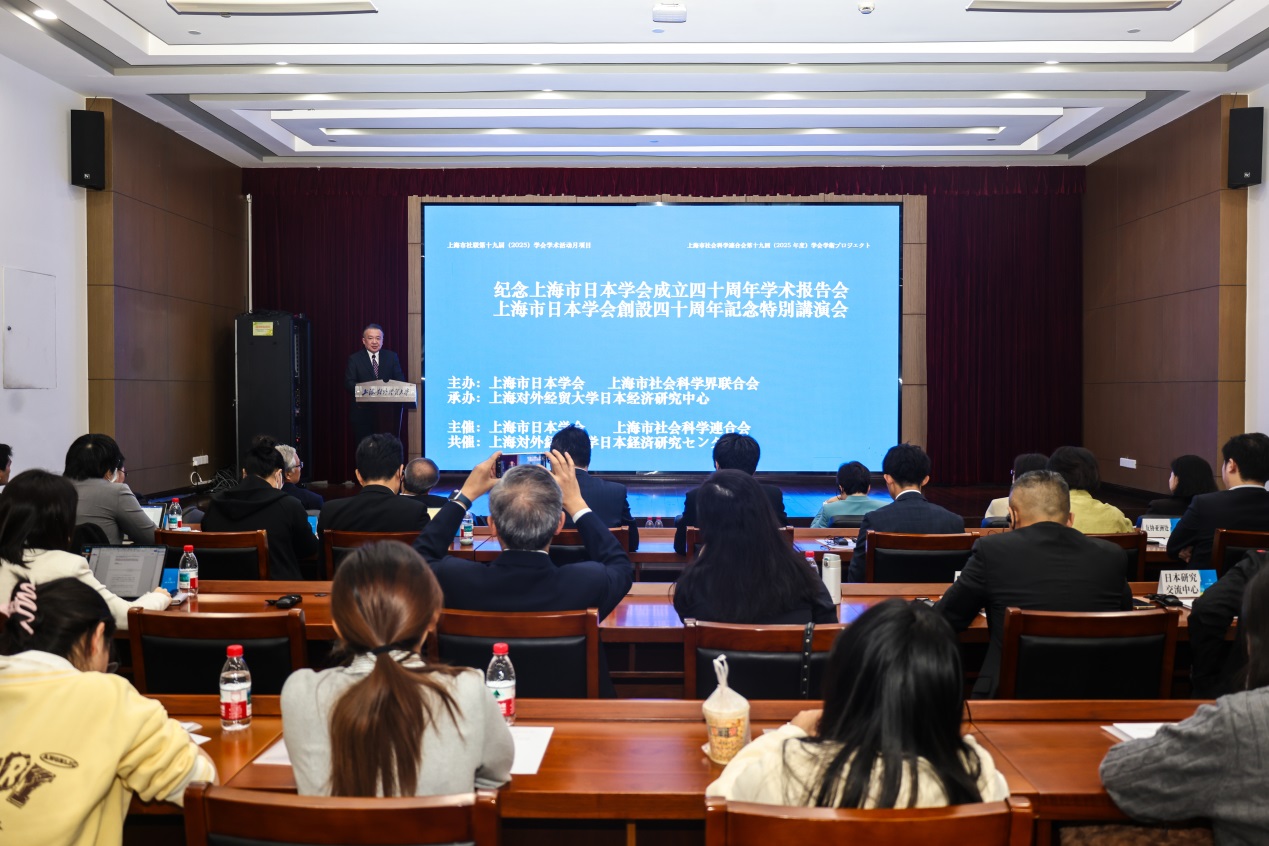11月1日,我校日本经济研究中心与上海市日本学会共同主办《纪念上海市日本学会成立四十周年学术报告会》,中华人民共和国特命全权大使吴江浩、日本国会中日友好议员联盟事务局长、日本众议议员、前经济产业大臣小渊优子分别发来书面和视频致辞。上海对外经贸大学校长汪荣明,市友协副会长宿琳,市社联副主席马英娟以及日本驻沪总领事馆大使冈田胜与会致辞。全国日本经济学会副会长、前商务部亚洲司司长宋耀明,日本内阁府事务次官井上裕之,日本政府税制调查委员会会长、日本综合研究所资深研究员翁百合以及我校日本经济研究中心主任、上海市日本学会会长陈子雷分别围绕中日经贸关系、日本经济财政政策、日本人口动态与经济增长、日本经济与政策调控的经验与教训作了主题报告。来自复旦大学、上海国际问题研究院、上海大学、上海外国语大学、上海工程技术大学、上海市日本研究交流中心等沪上高校及科研机构的几十位专家学者出席了本次报告会。上海市日本学会成立于1985年。自诞生以来,凝聚了上海老一辈日本研究学者的远见卓识和学术热忱,为深入认知近邻、促进中日两国相互理解和推动交流合作发挥了重要作用。四十年来,学会始终坚持以学术为本,致力于促进对日本全方