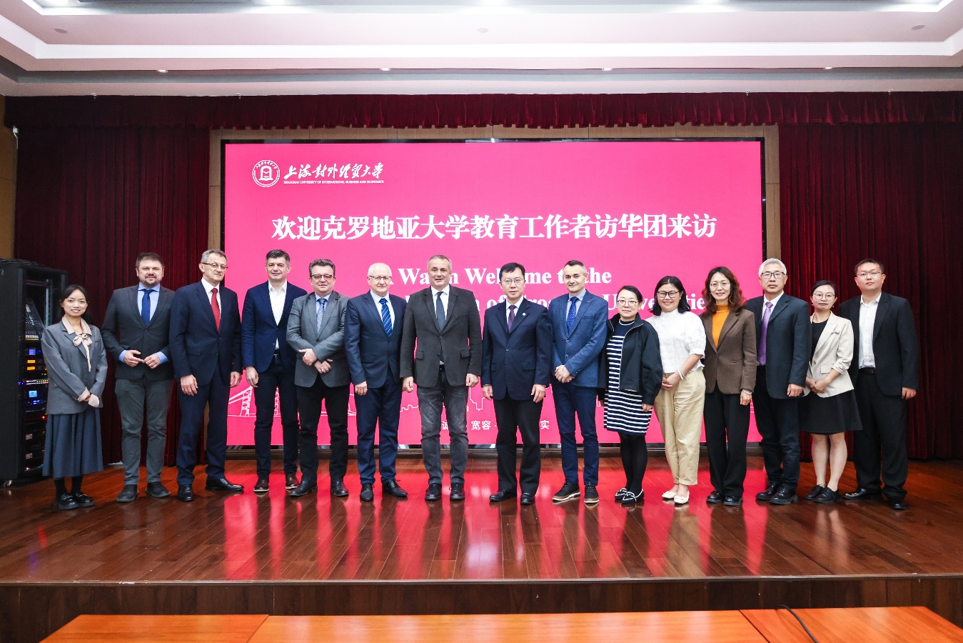 4月17日上午,在教育部中外语言交流合作中心的支持下,克罗地亚大学教育工作者访华团一行访问我校。访华团成员包括萨格勒布大学副校长Jurica Pavicic、Dubravko Majetic,奥西耶克大学副校长Jurislav Babic、Boris Crnkovic,萨格勒布大学国际交流处处长、萨格勒布大学孔子学院(以下简称“萨大孔院”)外方院长Kresimir Jurak等教育界人士。校长汪荣明在长宁校区会见了访华团一行,外事处处长金泉、财务处处长殷枫、萨大孔院中方院长杨海燕及相关工作人员参加会见,会议由外事处副处长张水辉主持。汪荣明代表学校欢迎访华团一行到访,并介绍了学校最新发展情况。他指出,学校与萨格勒布大学共建的萨大孔院经过十余年的发展,已成为两国教育文化合作的典范,为增进人民相互了解与友谊作出了积极贡献。双方互访频繁、师生交流活跃,希望萨大孔院在深耕中文教育主业的同时,进一步突出商务、旅游、创意产业等办学特色,切实发挥中克教育人文交流的桥梁作用,努力建设成为中东欧地区的示范孔子学院。他还表示,非常高兴与奥西耶克大学签署谅解备忘录,期待两校以此为起点,开展广泛而深入的合作。J