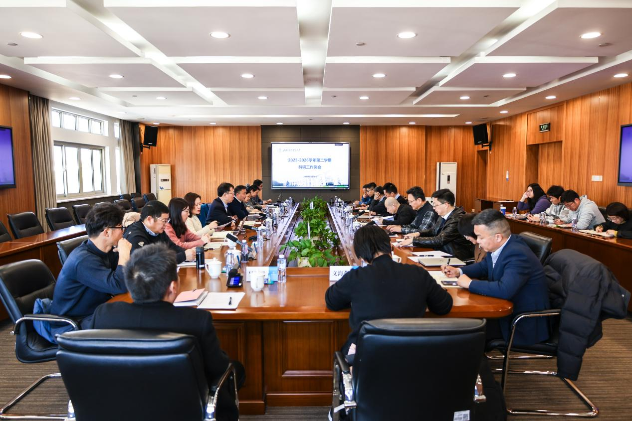 为科学谋划学校“十五五”科研工作及推进2026年重点科研任务,学校于3月10日在松江校区召开2025-2026学年第二学期科研工作会议。校长汪荣明出席,各学院/研究院科研工作负责人以及科研处全体人员参加会议。会议由科研处处长闫海洲主持。