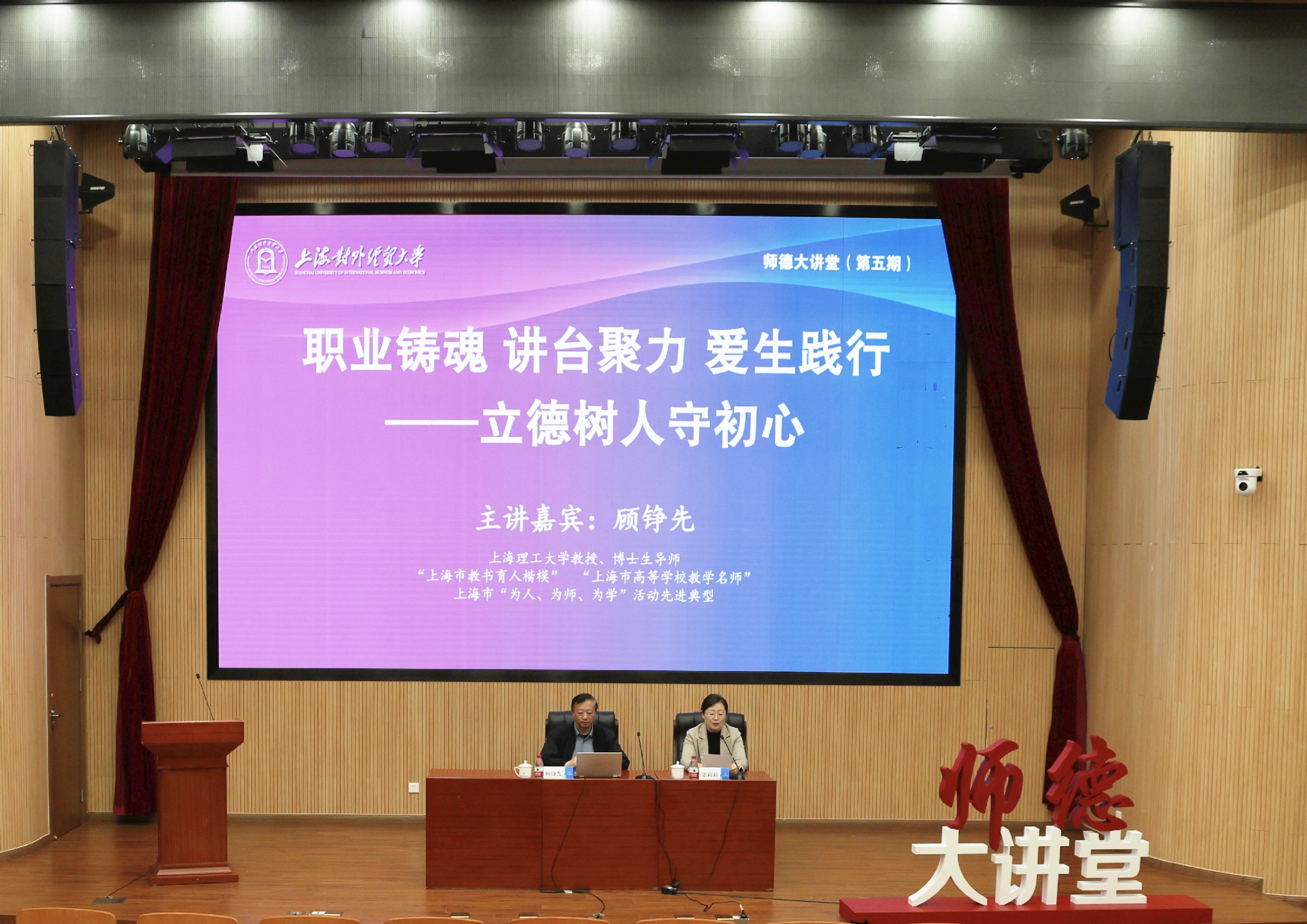 为深入学习贯彻党的二十届三中、四中全会精神和全国教育大会精神,大力弘扬教育家精神,引导全校教师坚守教育初心,厚植师德涵养,12月1日下午,学校第五期“师德大讲堂”在松江校区图书馆思源报告厅举行,邀请上海理工大学顾铮先教授作题为《职业铸魂,讲台聚力,爱生践行——立德树人守初心》专题报告。2025年新进教师岗前培训班全体学员参加。顾铮先教授以平实而真挚的语言,结合自身从教三十九年的育人实践,围绕“三个热爱”即对教育事业、三尺讲台和每位学生的热爱,通过丰富生动的教书育人实践案例,分享了他在教学一线践行教育家精神的深刻体悟。他表示,教师不仅是一份职业,更是一份需要以心投入、以爱坚守的事业。他强调,教师应坚守职业本色,以对教育事业的无限忠诚与热爱,履行立德树人根本任务;坚守育人阵地,以严谨的治学态度与扎实的教学功底,将课堂教学升华为一门艺术;坚守师者仁心,始终将学生成长放在首位,严管与厚爱相结合,用行动诠释“爱是教育的灵魂”。整场报告内容充实启发性强,引发在场教师强烈共鸣,大家纷纷表示将自觉践行教育家精神,争当“四有”好老师,为学校高质量发展和教育强国建设贡献自己的力量。