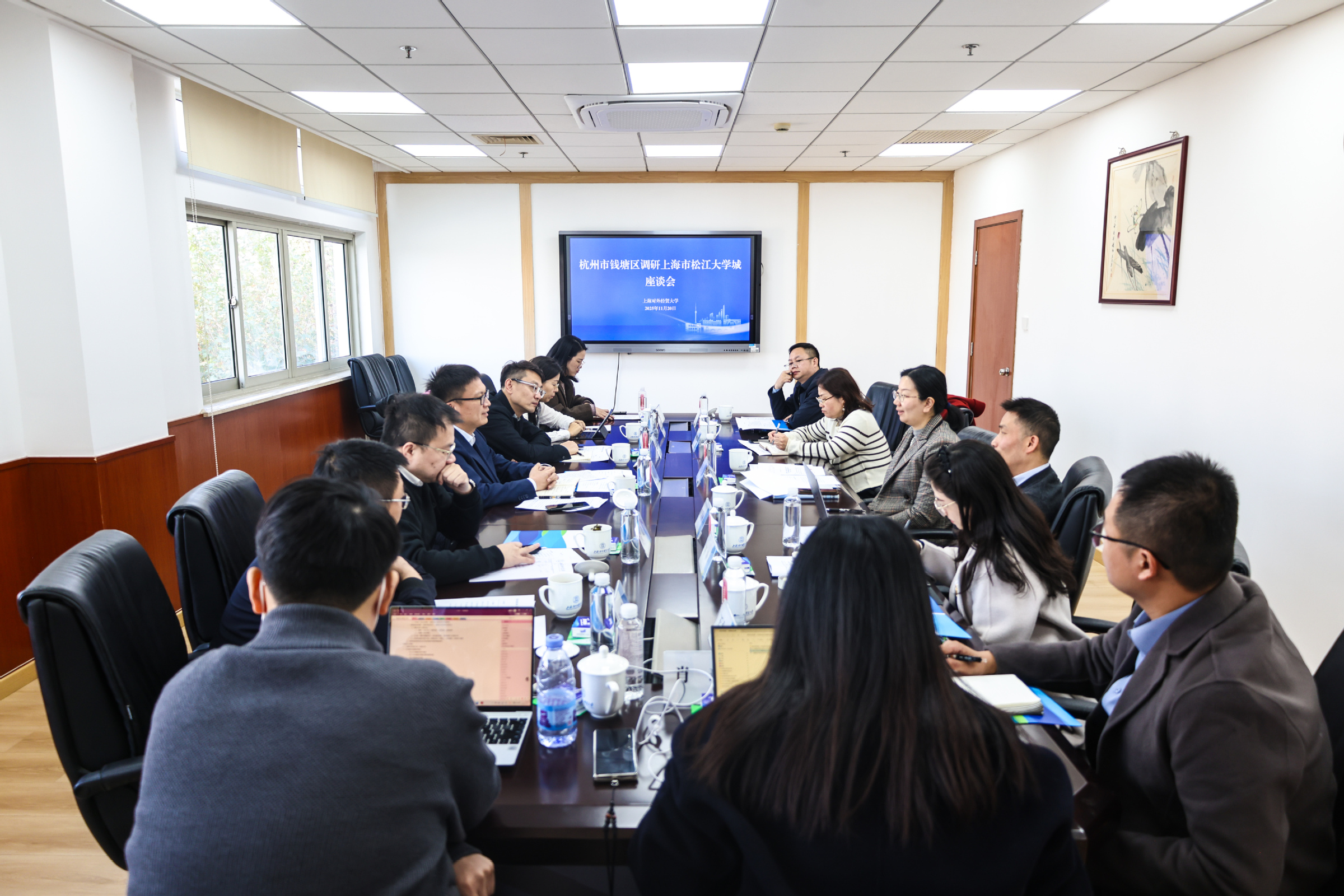 11月20日下午,杭州市钱塘新区党工委委员、区委常委周妙荣带队一行来访学校松江校区,围绕松江大学城管理模式、高校与区域规划编制协同、产学研合作及科技成果转化等议题开展专题调研交流。党委副书记、副校长沈艺出席并主持座谈会。沈艺对周妙荣一行的到来表示欢迎,对钱塘区在区域发展、区校协同、科技创新领域取得的成果表示祝贺。她强调,上海对外经贸大学作为松江大学城管委会轮值高校,始终积极推动大学城从“简单集聚”向“深度协同”转型,在统筹高校资源、优化治理机制等方面持续探索,当前正重点支持和配合推进松江大学城科创源建设,使大学城与区域产业赋能联动。周妙荣代表杭州市钱塘区对学校的周到安排与经验分享表示感谢。他强调,钱塘区作为杭州高质量发展重要增长极,正着力深化区校合作、推动科技创新,在高校集群治理、产学研深度融合等方面仍需借鉴先进模式。他表示,此次调研中,松江大学城在管委会轮值机制、科创源协同建设及基础设施共建共享等方面的实践,为钱塘区提供了借鉴参考。座谈会上,双方围绕松江大学园区管委会运行机制、资源平台共享路径、大学与科创源建设协同等核心调研议题展开深入务实交流。杭州市钱塘区区委办公室、钱塘科学城管理