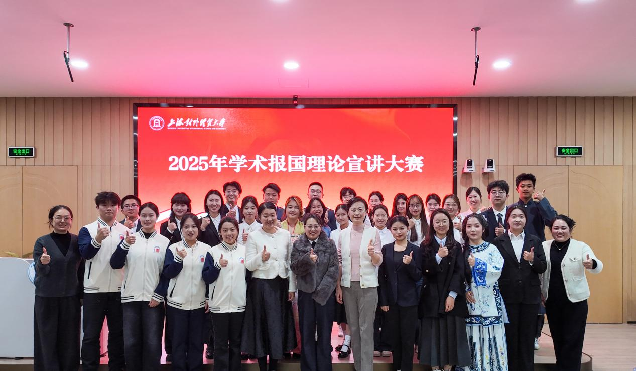 学术铸魂担使命,青春逐梦报家国。11月18日,学校2025年学术报国理论宣讲大赛在松江校区学思楼D1室举行。上海视觉艺术学院播音与主持艺术专业主任沈萌萌,校党委学(研)工部部长、学生处处长缪韵笛,党委研工部副部长、研究生院副院长张晴晴担任评委。经学院推荐、书面评审,共有8支队伍从22支队伍中脱颖而出。展示环节,8支队伍同台竞技,借助情景演绎等形式,围绕贸易强国、金融报国、文化传播等时代命题,结合学院学科专业特色展开宣讲,主题鲜明、视角独特,生动诠释了“把论文写在祖国大地上”的学术追求与报国热情。经过现场激烈角逐,以下团队在此次学术报国理论宣讲大赛中获奖:此次大赛是一堂专业导向突出学科交叉融合的思政大课,激励广大学生立足专业所学,将个人理想熔铸于民族复兴的壮阔征程,在服务国家战略中勇担先锋使命。未来,党委学(研)工部、研究生院将持续创新思政育人模式,对标国际经贸创新与治理、国际金融与国际投资、数字管理与智能决策等重点领域人才培养目标,着力构建“有高度、有温度、有深度”的沉浸式教育场景,让习近平新时代中国特色社会主义思想真正成为青年成长成才的思想灯塔和行动指南,切实转化为学思用贯通、知信行