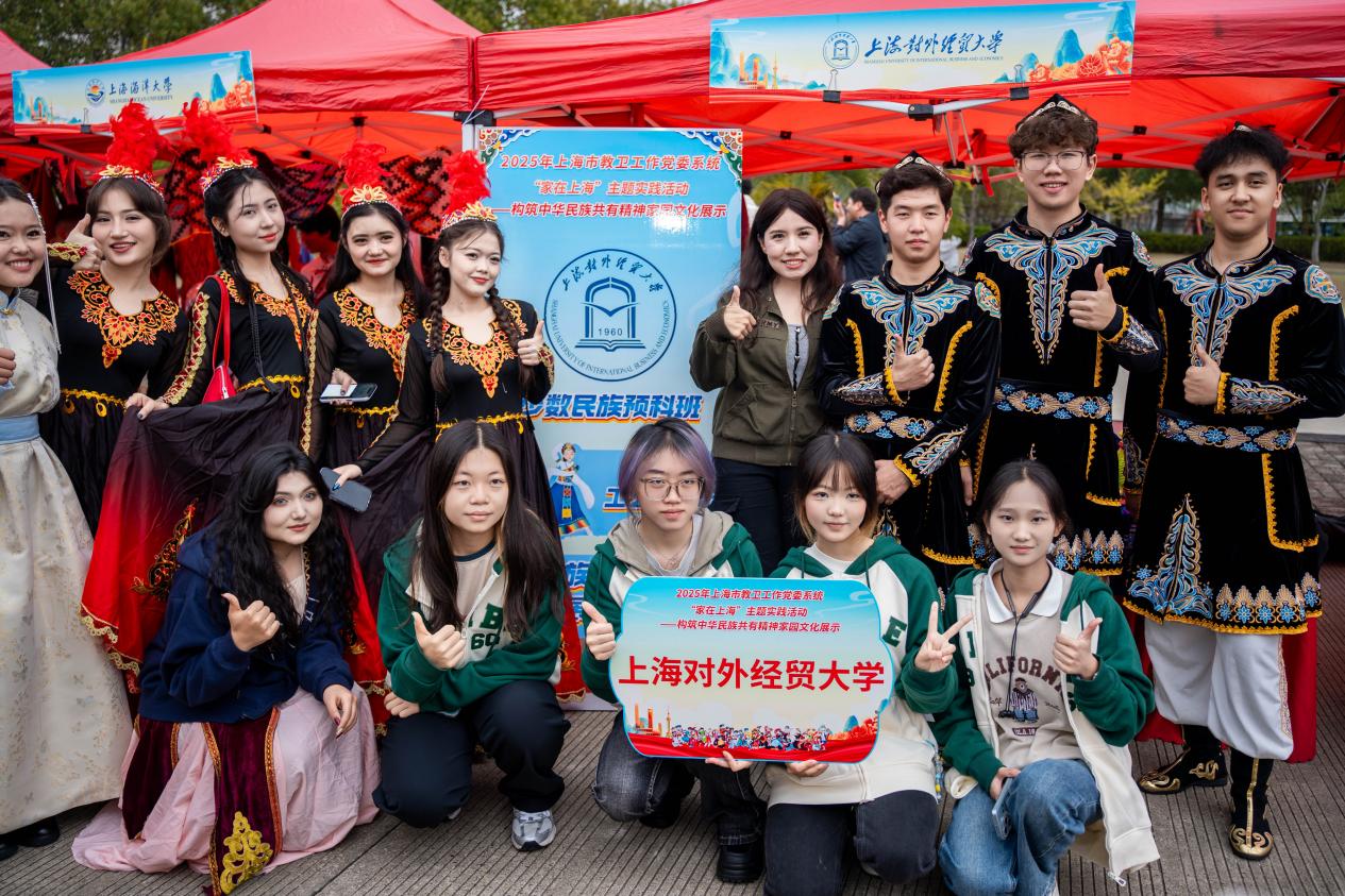 为深入学习贯彻党的二十届四中全会精神,全面落实习近平总书记关于铸牢中华民族共同体意识、做好新时代统一战线工作的重要指示精神,以文化凝心铸魂、以精神凝聚力量,11月5日,由上海市教卫工作党委主办,上海市民族团结进步联合会支持,上海第二工业大学承办的2025年上海市教卫工作党委系统“家在上海”主题实践活动——构筑中华民族共有精神家园文化展示在二工大举行。来自上海40所高校的千余名各民族师生参加了本次文化展示活动。市教卫工作党委副书记张艳萍,市教卫工作党委统战处处长张隽,市民宗局民族一处处长、市民族联副会长任真,浦东新区区委统战部副部长、区民宗办副主任达明宗,上海第二工业大学党委书记陆敏,各参展高校统战干部及各民族师生代表出席了开幕式。我校民族联理事娜孜拉老师带领会展与传播学院民族学生代表参加活动,向上海各高校师生展示上经贸大民族工作风采。本次活动以铸牢中华民族共同体意识为主线,紧扣“交融·共生·家园”主题,将中华优秀传统文化、社会主义先进文化与校园文化建设紧密结合,设置民族文艺表演、民族特色文化展示、民族游戏互动体验、海派文化展区四大核心板块,为师生打造沉浸式文化体验平台。开幕式上,我校学