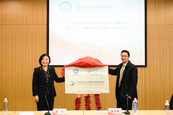 11月24日,我校与上海海事法院举行“21世纪海上丝绸之路研究中心”揭牌仪式。上海海事法院院长赵红、