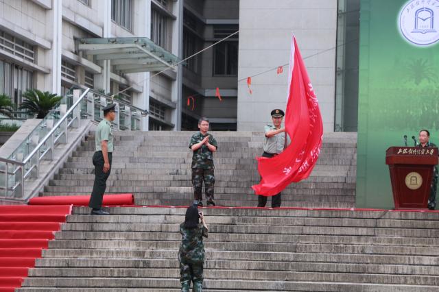 承训教官成守证在仪式上发言,他承诺从自我做起,做好表率,在思想上高度重视,在军训中严格要求,对同学们关心爱护。承训学员代表刘杨冰儿在发言中表示,自己将在这8天的军训中严格训练,服从指挥,做好战骄阳、磨意志、勇拼搏、展英姿的准备。