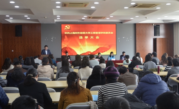 12月23日下午,中共上海对外经贸大学工商管理学院委员会换届选举大会在信息楼会议室503举行。副校长聂清、党委组织部副部长范登峰出席大会,学院全体党员参加大会,党外教职工列席大会。大会由工商管理学院党委副书记刘素贞同志主持。