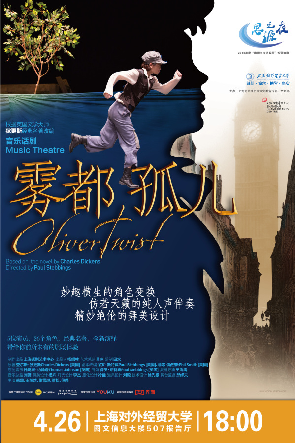4月26日,2018年度“思源之夜”高雅艺术进校园系列活动首场演出在图文信息大楼507报告厅举办。本次演出邀请上海话剧艺术中心献演音乐话剧《雾都孤儿》。