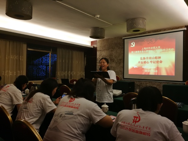 此次井冈山培训由我校党委组织部、党校与井冈山红色文化教育学院合作开展,安排了开班授旗仪式、专题讲座(《井冈山革命斗争与井冈山精神的时代价值》《十九大精神学习解读》)、互动课堂(老红军后代、井冈山建设者访谈)、现场教学(井冈山革命烈士陵园、革命博物馆、茨坪毛泽东旧居等)、实地考察、体验式教学、主题党日活动、唱红歌等形式多样的培训活动。此外,在7月6日晚上,培训班临时党支部组织召开了主题党日活动总结交流会,15位参加此次井冈山培训的学员逐次诵读了自己手抄的《星星之火 可以燎原》相关段落,随后结合井冈山参训经历,畅谈了学习感悟与心得体会。学员们普遍表示井冈山学习之旅充实而生动,寻找了初心,牢记了使命,未来将进一步学习领会习近平新时代中国特色社会主义思想和党的十九大精神,在教学、科研、管理工作中做到信念坚定、担当有为。