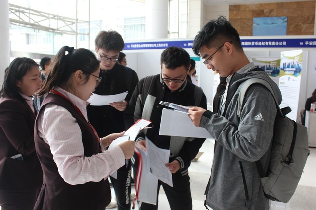 10月19日下午,由我校和“陆家嘴人才金港”平台共同举办的“陆家嘴金融城2018秋季名校直通车校园招聘会”上海对外经贸大学专场在图文信息大楼二楼举行。招聘会现场云集了招商银行、中国大地财产保险、众华会计师事务所、申万宏源等26家优质企业,提供多达120种岗位招聘机会。参会企业以金融业为主导,其他多个行业共同参与。招聘会吸引了约600名学生到场与企业积极交流岗位信息。
