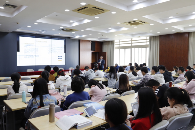 严大龙在致辞中对三位嘉宾做客博文讲堂表示热烈欢迎。他指出,本次博文讲堂也是纪念改革开放40周年系列活动之一,三位嘉宾将讲述中国资本市场的发展历程和引发的思考。我校作为财经类高校始终致力于培养国际化经贸人才,许多毕业生毕业后从事证券、信托等金融行业,相信今天的讲座对在座同学进一步了解中国资本市场发展脉络,深化课堂所学金融知识起到促进作用。