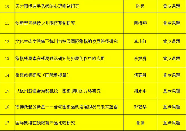 日前,根据专家评审委员会评审,经中国棋院杭州分院院务会议审议通过,公布2019年度棋文化研究课题申报立项评审结果。其中,我校马克思主义学院副教授胡永中申报的《以杭州亚运会以契机统一围棋规则的方略研究》荣获2019年度棋文化研究“8+X”重点课题立项。