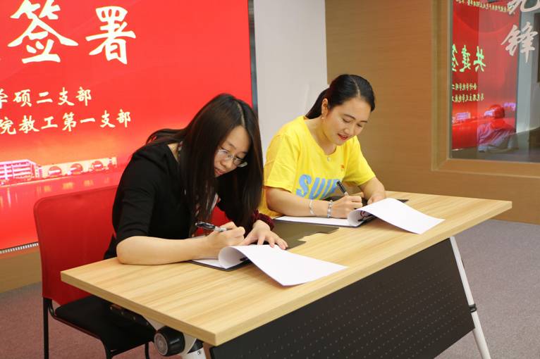 活动中,会计学院学硕二支部和马克思主义学院教工第一支部以党员联学、支部联建和资源联享的方式,加强党组织的横向交流与跨界合作,以马克思主义学院教工第一支部理论专业化的指导,共促党支部建设发展,圆满完成结对共建签约仪式。