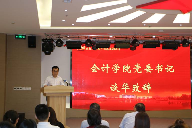 会计学院党委书记谈华老师总结致辞,勉励全体党员在学院组织引领工作中牢记使命,发挥党员的引领辐射作用。