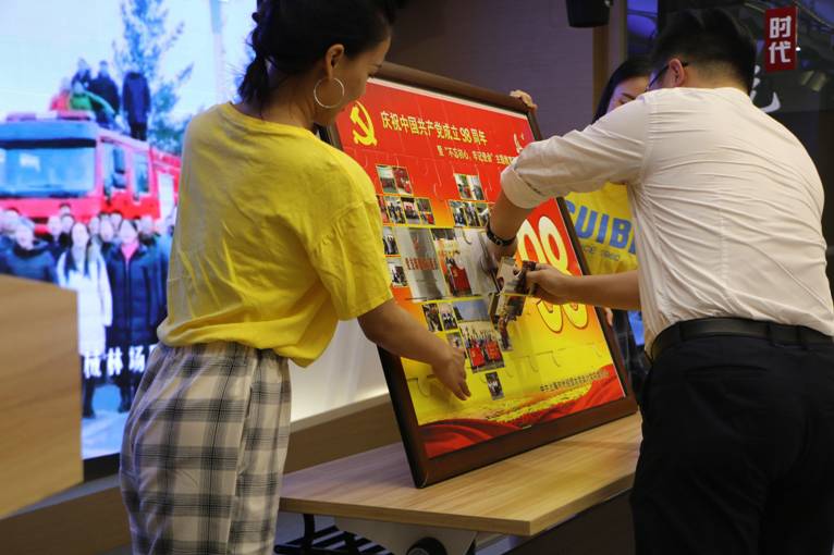 最后,值此党的98岁生日来临之际,在场党员老师和同学用心用行向伟大的党献礼,在印制着会计学院主题党日活动和组织生活集锦图片的主题拼图上,一同拼出爱党的形状,一同拼出98岁的形状,共同祝福伟大的中国共产党98岁生日快乐,牢记初心,不辱使命,为实现中华民族伟大复兴不懈奋斗!