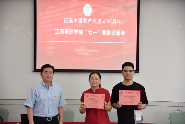 7月1日下午,工商管理学院在信息楼530会议室举办庆祝建党98周年“七一”表彰交流会。学院领导班子以及全体党员出席交流会,党委副书记施毅婷主持会议。
