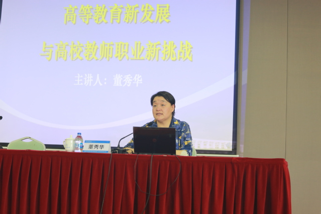 会上,董秀华作题为“高等教育新发展与高校教师职业新挑战”的专题报告。她首先对高等教育发展的新趋势新动向作了回顾和总结,分析了高校教师面临的新挑战,认为高校教师应有新作为。她指出,全国高校思想政治工作会议将培养什么人、如何培养人、为谁培养人的问题提到了空前的高度,将立德树人作为高校的根本使命,在这种新形势下,高校教师不仅要积极提升自身的育德意识和育德水平,而且还应有新作为,要转变传统教学模式,突破教材中心地位,引入课外内容,引导学生养成自主学习的意识和习惯,培养适应当今和未来社会需求的人才。