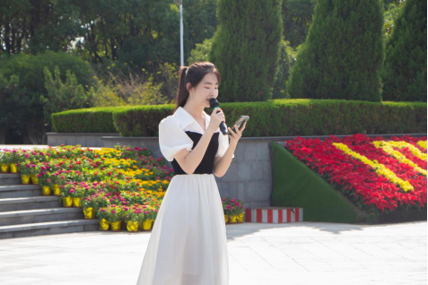 来自贸易谈判学院的王天葆、夏天明珠、张思懿、张瑀岚等4名同学朗诵原创诗词《我携一捧鲜花而来》。同学们用真诚嘹亮的嗓音将人民英雄的热血事迹娓娓道来,用文字诉说着对英雄们的怀念以及吾辈青年继承先辈事业的决心。愿英魂不泯,浩气长存。