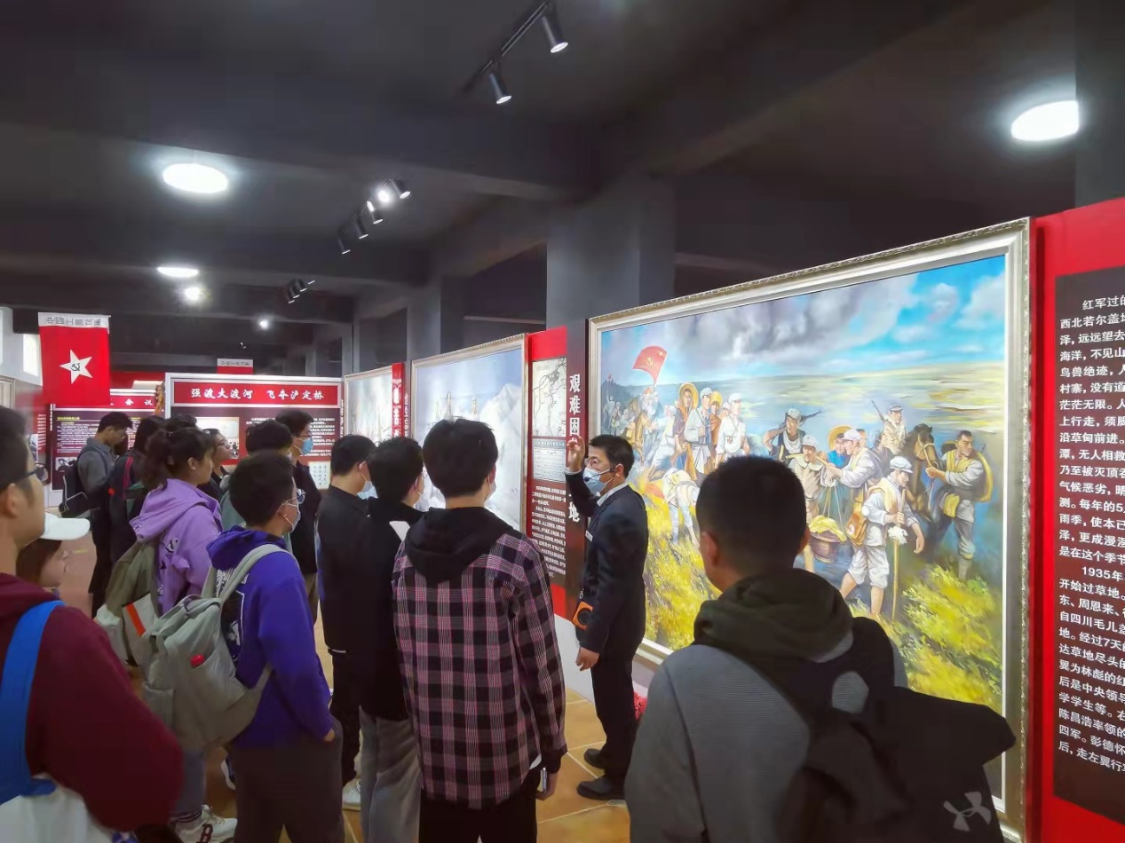 参观中,讲解员向师生们详细介绍了长征中的诸多英雄人物和他们的英勇事迹。伴随着庄重的背景音乐,那些血和泪的史诗岁月,仿佛触手可及,曾经教科书上认识的人物和事迹也仿佛更有温度,更加可感,更抵人心。