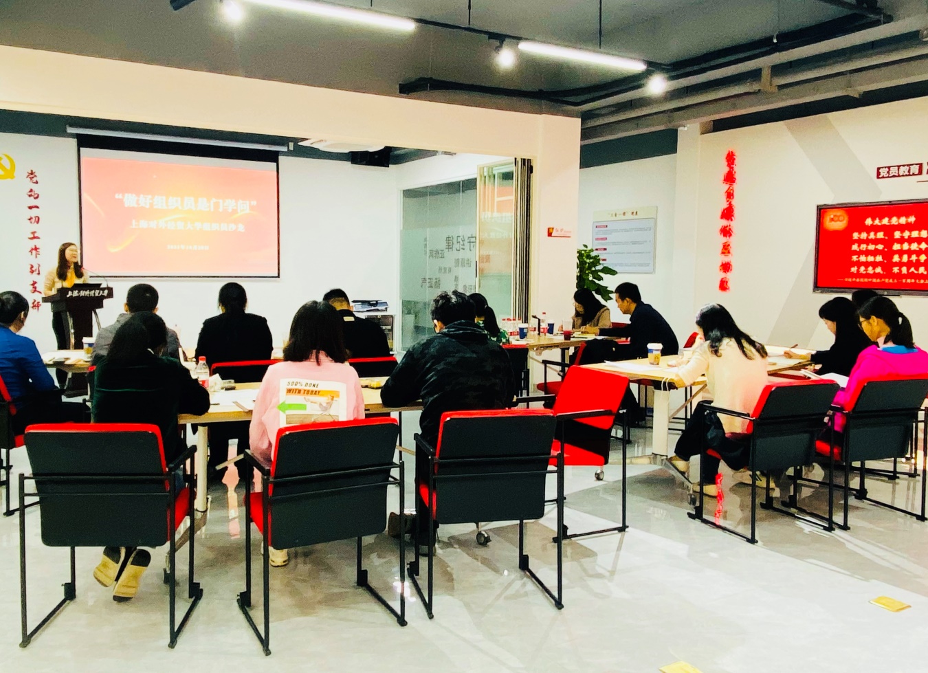 为深入学习贯彻《中国共产党普通高等学校基层组织工作条例》,进一步加强学校组织员队伍建设,校党委组织部于10月20日下午在党建服务中心举行组织员专题沙龙,邀请上海工程技术大学党委组织部副部长熊伟作专题报告,校党委组织部副部长刘素贞、全体专兼职组织员参加了沙龙活动。