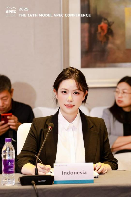 在全国总决赛中,曾薪宇同学代表印度尼西亚在“Green Economy and Sustainable Growth”主题会场1参加比赛,施嘉琪同学代表菲律宾在“Green Economy and Sustainable Growth”主题会场4参与角逐。两位同学以流畅的英文表达、清晰的逻辑架构和扎实的实证分析,清晰阐述政策提案,并在自由讨论中积极建言,体现出优秀的跨文化沟通与协作能力。