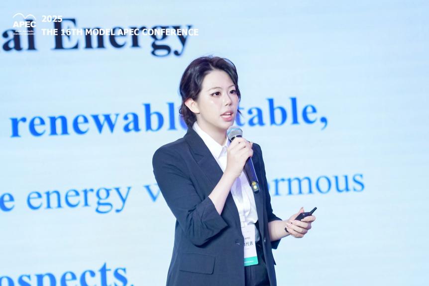 经过一天的紧张比赛,曾薪宇同学成功晋级全国12强。9月21日下午,在巅峰对决的过程中,曾薪宇同学就Enhancing Geothermal Development for APEC Energy Transition这一主题进行深入阐述,针对国际化绿色能源合作的痛点与挑战提出高水准解决方案,其表现获得了评委的高度认可。