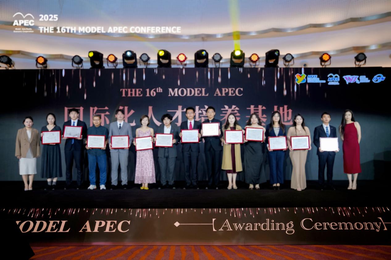 9月21日晚,第十六届亚太青年模拟APEC大会全国总决赛颁奖典礼在北京希尔顿酒店圆满落幕。我校国际商务外语学院被授予“MODEL APEC国际化人才高校培养基地”荣誉称号,人才培养国际化水平再获认可。经过激烈的角逐,总决赛中我校学子脱颖而出,由国际商务外语学院周芹芹和徐呢喃两位老师带队指导的23级英语(中英合作)专业的曾薪宇同学荣获全国总决赛三等奖,23级英语(中英合作)专业的施嘉琪同学荣获全国总决赛优秀奖。