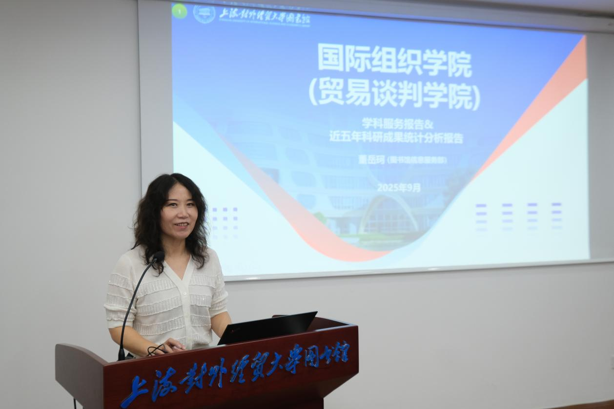 9月28日上午,在学校松江校区图书馆522会议室举行了图书馆学科服务走入国际组织学院(贸易谈判学院)暨学科服务报告发布会,会上发布了《国际组织学院(贸易谈判学院)学科服务报告》和《国际组织学院(贸易谈判学院)近五年科研成果统计分析报告》。图书馆领导班子、学科服务团队馆员,以及国际组织学院(贸易谈判学院)领导班子、骨干教师和青年教师代表共同出席。