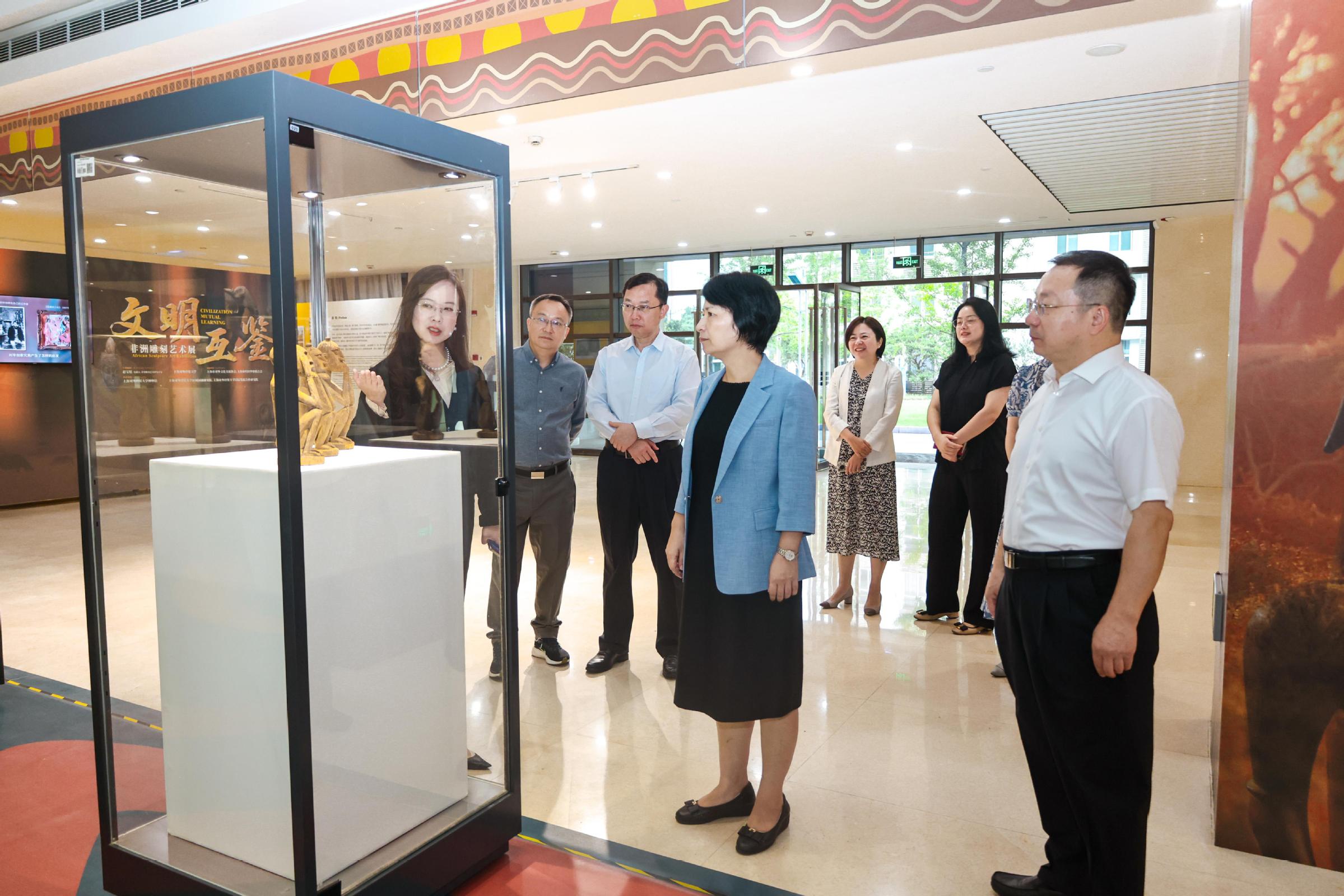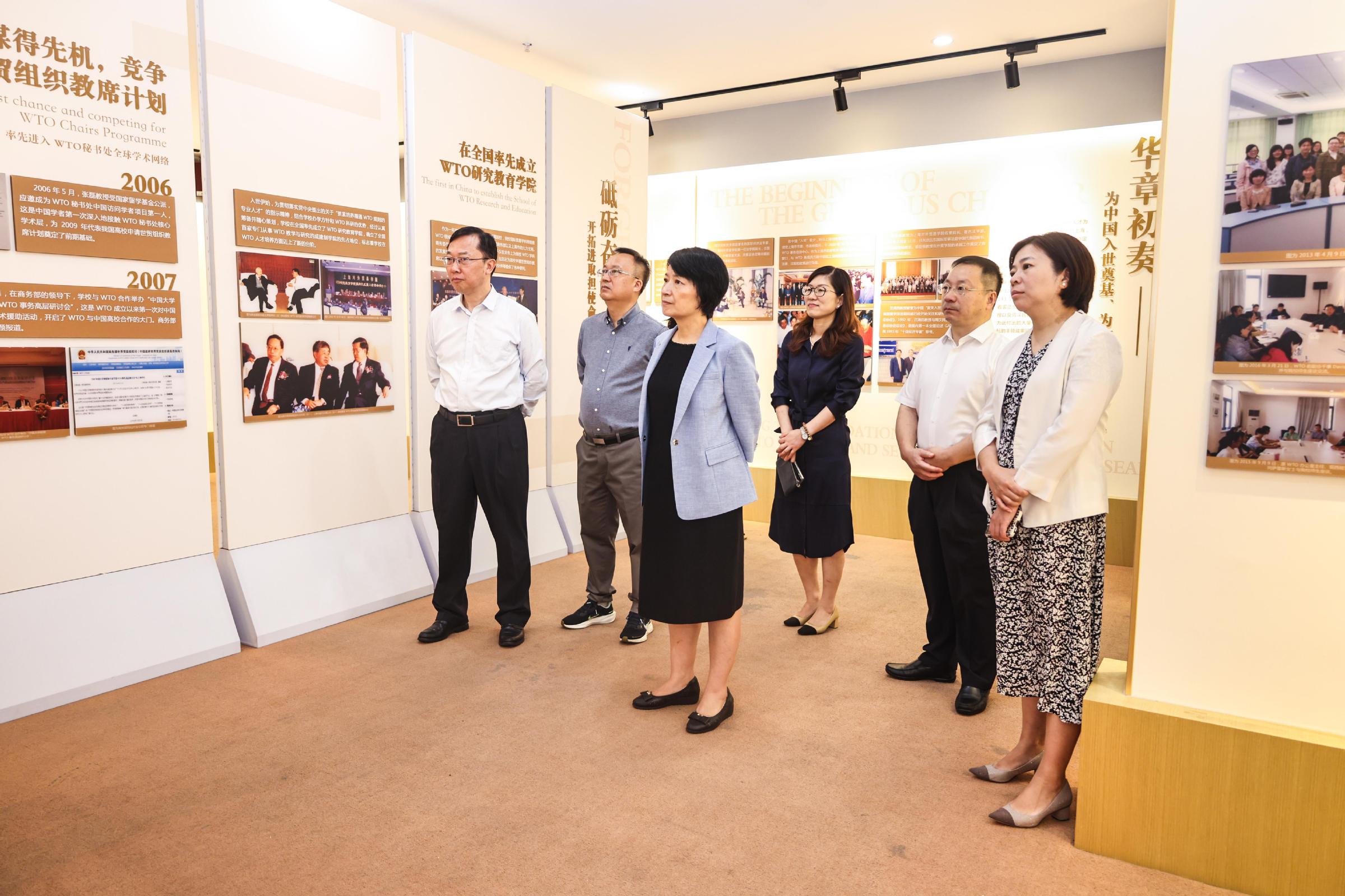 会前,梅兵、雷启立一行参观调研了学校博物馆展览、国际经贸创新与治理研究院暨决策咨询研究基地、WTO亚太培训中心等场所,相关单位负责人陪同讲解。
