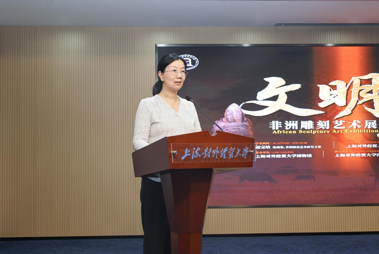 10月16日下午,由上海对外经贸大学主办的“文明互鉴——非洲雕刻艺术展”在长宁校区开幕。本次展览由上海市对外文化交流协会、上海市归国华侨联合会支持,上海市对外经贸大学博物馆承办,上海对外经贸大学区域国别研究院与上海对外经贸大学国际发展合作研究院共同协办。