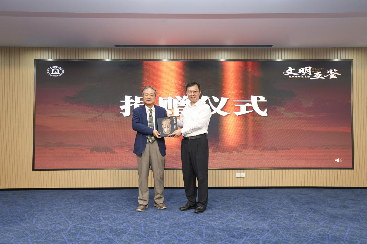 开幕式上,著名收藏家、非洲雕刻艺术研究专家赵宝培向学校捐赠《变形之美》套书。为表达谢意,汪荣明校长为赵宝培颁发捐赠感谢状,并向赵宝培颁发校博物馆特聘专家证书。