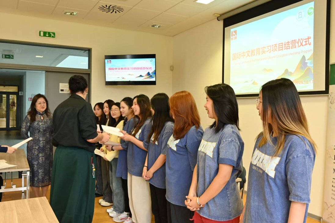 结营仪式上,孔子课堂负责人郝文钧院长为9位学生颁发结营证书。他在致辞中鼓励同学们:“国际中文教育是一场漫长而美丽的旅程,希望你们不断学习、实践、邂逅与留念,在传播中华文化的道路上,做母校精神的践行者,做文明互鉴的桥梁者。”