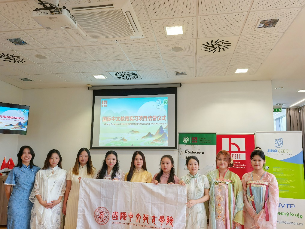 近日,国际中文教育学院海外实习项目顺利结营,恰逢上海对外经贸大学建校65周年,国际中文教育学院的9位学生在捷克布杰约维采,以文化为笔、以匠心为墨,书写了一段献礼校庆的跨文化篇章。
