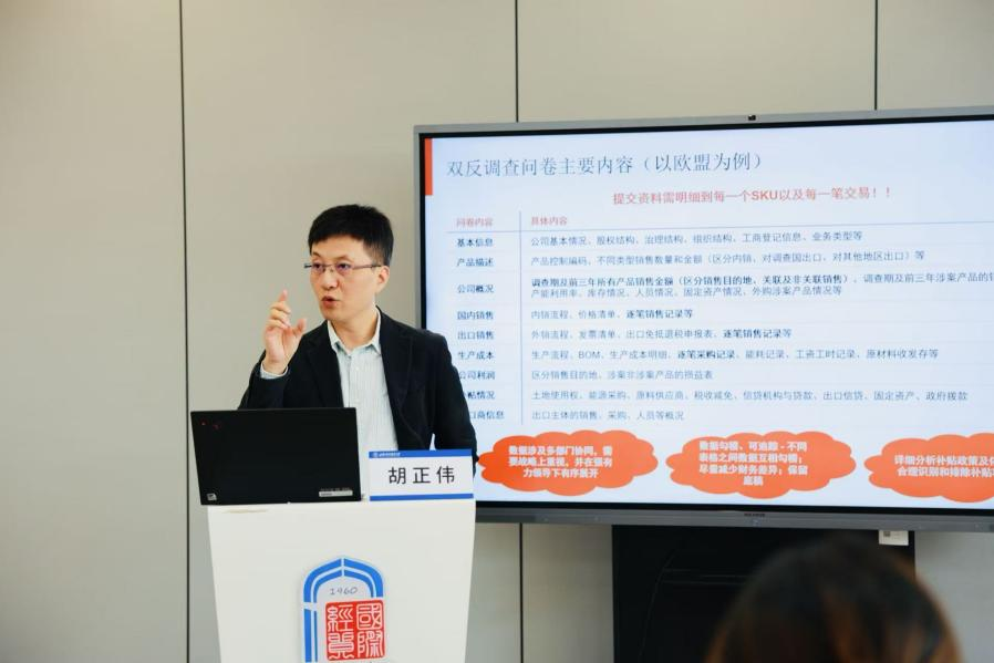 2024年全球对华贸易救济原审立案数量创下142起新高的背景下,双反调查(反倾销、反补贴)与欧盟《外国补贴条例》已成为中国企业国际化进程中面临的重大合规挑战,尤其对以新三样为代表的重点产业及上下游企业影响显著。本期训练师为普华永道中国税务及商务咨询部门合伙人胡正伟先生。他以深厚的实战经验与前沿视野,系统解析了反倾销与反补贴调查的核心机制,深入剖析了欧盟《外国补贴条例》的立法背景、执法动态及对中国企业财税合规的深远影响,并通过多个真实案例,生动再现了业务关键点。本期训练不仅帮助税务专硕学生建立起对国际财税合规环境的系统认知,更通过复盘典型案件的应对逻辑,提升了他们在复杂合规环境中的风险识别与策略应对能力。