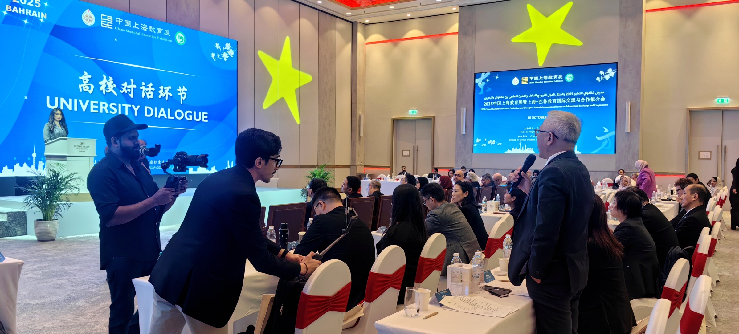 10月16日,“2025中国上海教育展暨上海-巴林教育国际交流与合作推介会”在巴林会议中心举行。来自巴林教育部、高等教育委员会、巴林13所大学和4所国际学校的80余位代表及上海高校参展人员共140余人参加交流推介会。在高校对话交流环节,我校外事处副处长张水辉与巴林教育界代表就中巴学生双向海外实习事宜进行了交流,希望双方高校加强学生各种形式的交流交换。