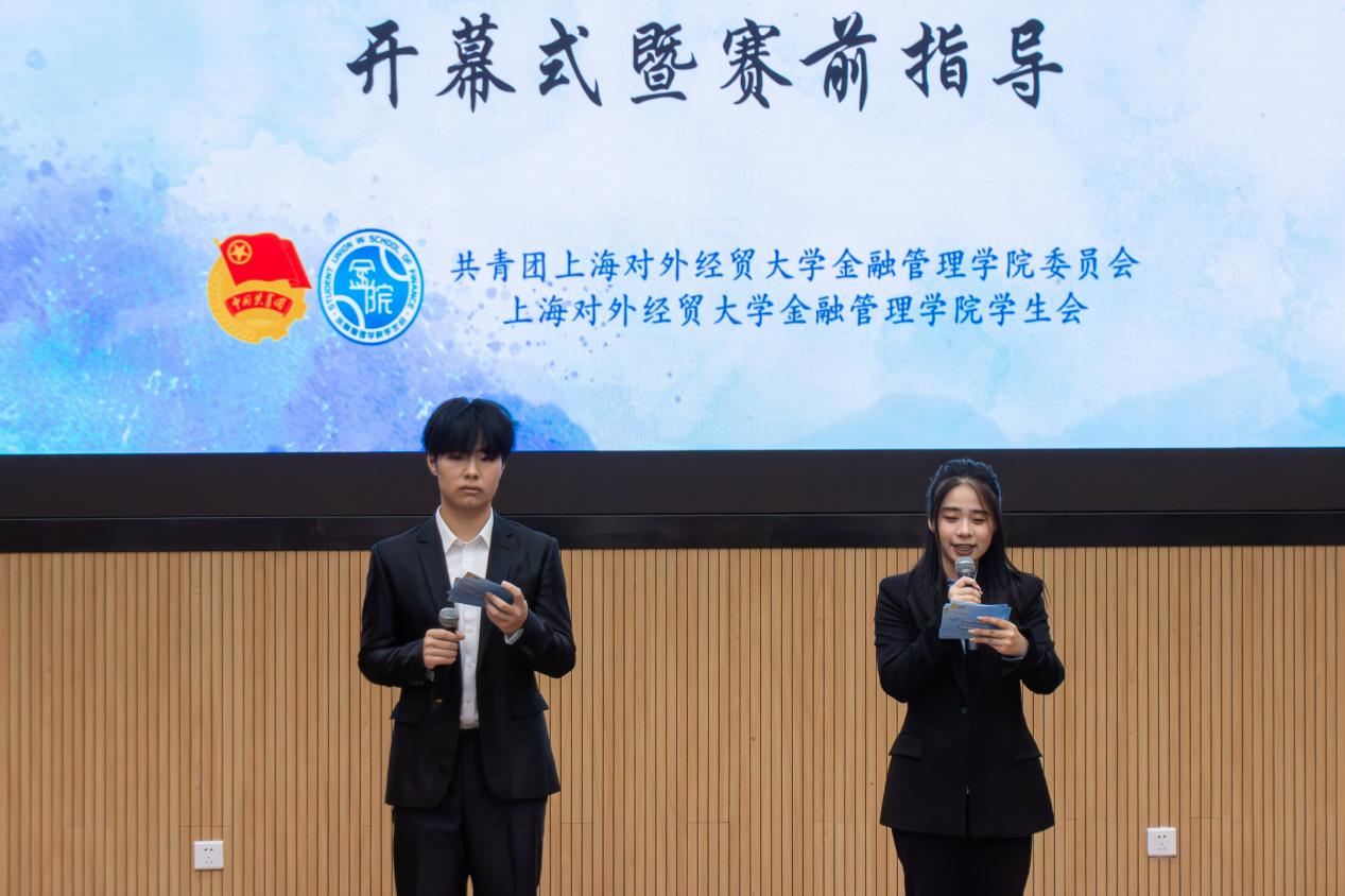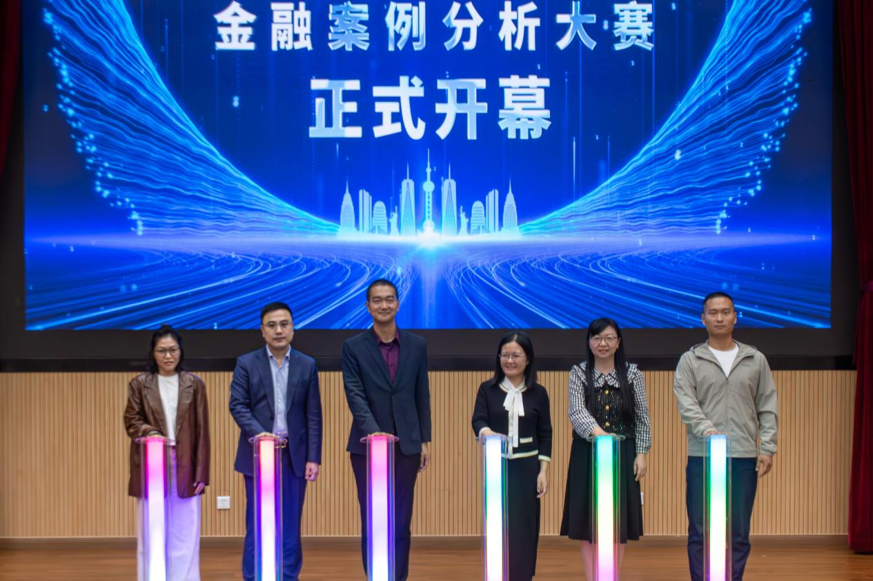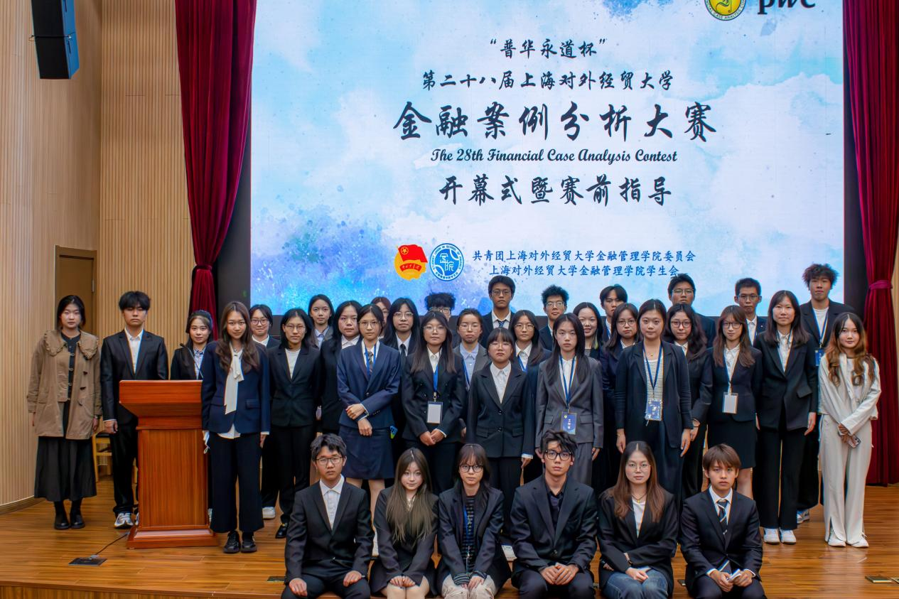 穆佳杰、陈琳、关印、郑迎飞、吴婷婷、关文博共同启动“普华永道杯”第二十八届上海对外经贸大学金融案例分析大赛。