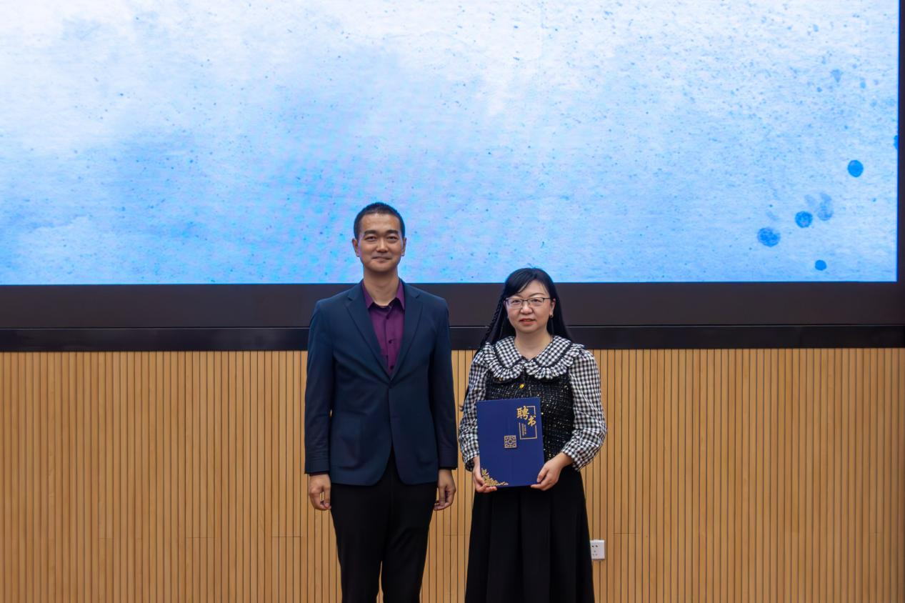 关印为吴婷婷颁发聘书,聘请她担任本届大赛指导老师一职。