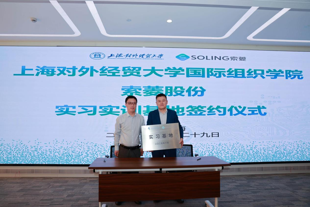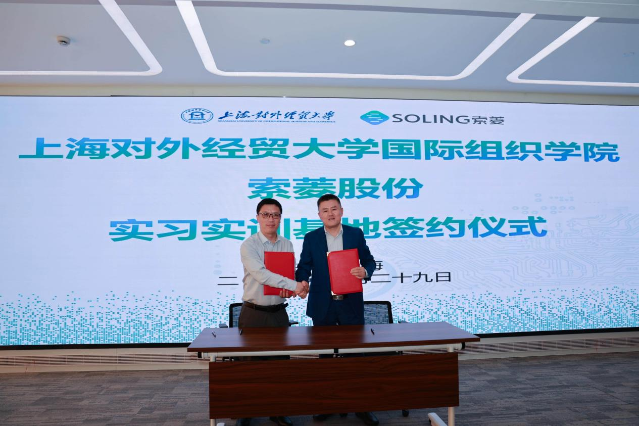 为深化产教融合,加强校企合作,10月29日下午,上海对外经贸大学国际组织学院(贸易谈判学院)师生一行前往位于松江区的索菱股份有限公司参访交流,签署实习基地共建协议。学院党委副书记程栋、副院长王瑞领、国际事务专业硕士学位点负责人王金强、研究生教学秘书郭歌以及学生代表出席了活动。索菱股份董事长盛家方与公司主要管理层热情接待了学院一行,并进行座谈交流。