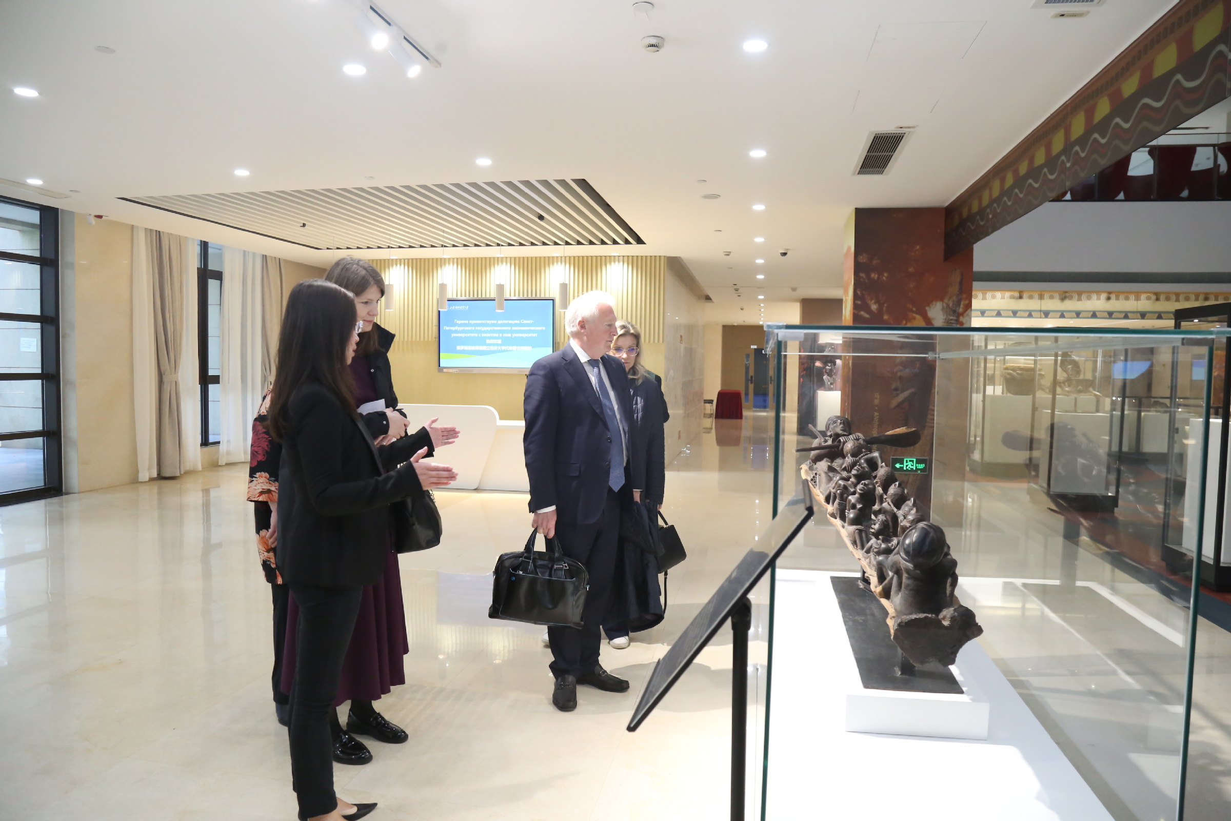 11月10日下午,俄罗斯圣彼得堡国立经济大学校长伊戈尔·马克西姆采夫(Максимцев Игорь Анатольевич),副校长娜塔莉亚·西罗塔(Сирота Наталья Павловна),总会计师、会计核算部主任塔季扬娜·科切特科娃(Кочеткова Татьяна Владимировна),项目管理与质量管理教研室讲师马兰(Антонова Екатерина Алексеевна)一行四人访问我校。校党委书记祁明在长宁校区会见代表团一行,学校外事处、规划处、财务处、人事处、创业学院等部门负责人或代表陪同会见。
