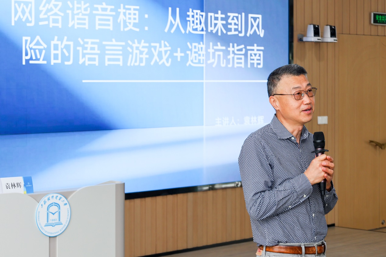 讲座上,袁林辉从网梗的溯源分析、谐音梗使用的避坑指南、典型行政处罚案例等三个方面,从专业的角度为大家剖析了谐音梗这一常见的网络元素是如何产生的,作为互联网的原住民又应该如何维护良好的网络环境。他指出,在网络宣泄情绪、表达情感已是一大趋势,网梗是人们主观感受和情绪在虚拟世界放大和传播的产物,谐音梗是以汉字为外壳、以语音趋同为纽带、以社交平台为放大器的戏仿式语言变体。