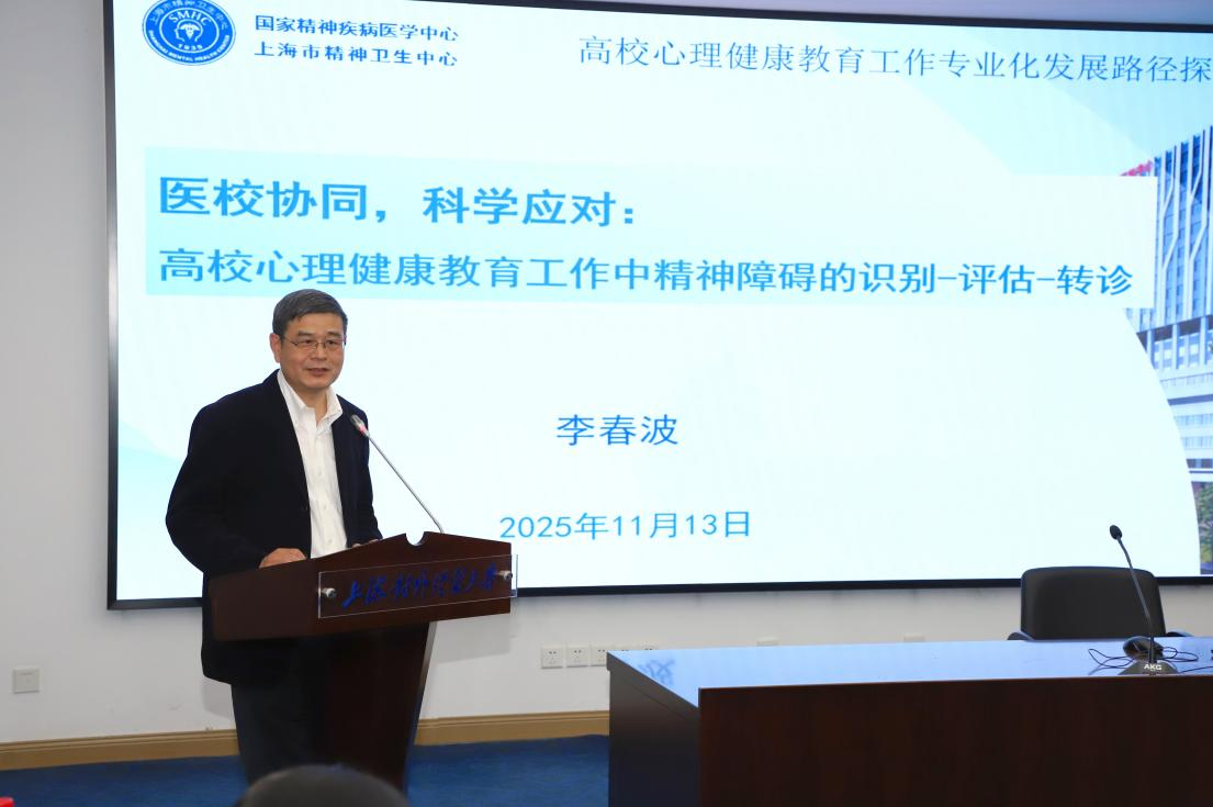 李春波作“高校心理健康工作中精神障碍的识别-评估-转介”的主题发言。他以详实的调研数据与权威文献为依据,系统梳理了大学生常见情绪问题的识别、评估和转介的干预路径,为提升高校心理健康工作的专业化与精准化水平提供了清晰的实践框架。