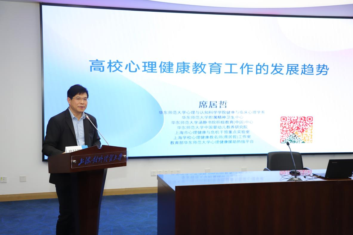 11月13日,由上海市教委立项支持的“高校心理健康教育工作专业化发展路径探索”研讨会在我校长宁校区综合楼326报告厅顺利举行。上海对外经贸大学党委副书记、副校长沈艺,上海交通大学医学院、心理学院博士生导师李春波,华东师范大学心理与认知科学学院教授、博士生导师席居哲,上海市教育科学研究院德育发展研究院老师以及来自全国外语外贸院校和上海多所高校的学工部领导、心理中心负责人和心理健康教育工作者等80余人出席会议。研讨会由校党委学(研)工部副部长陈雪主持。